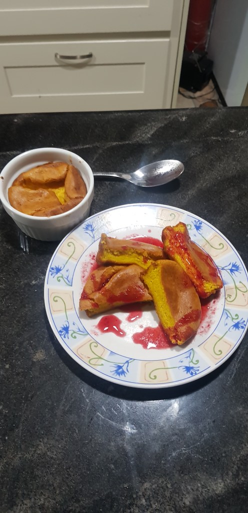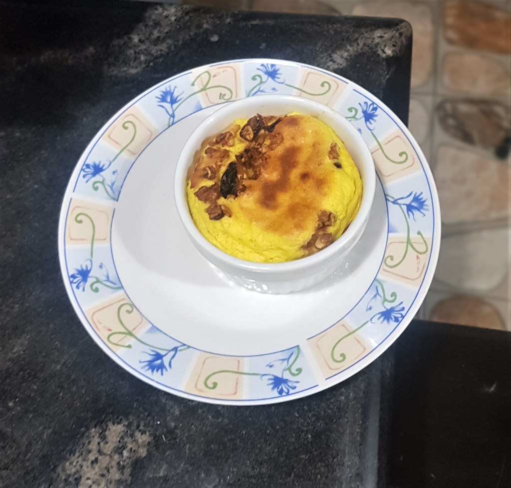 Souffle is very versatile. You can go crazy with it and make different types. It can be savory also. For this Souffle I made, I added granola i made previously. Gave it a gritty but fluffy taste.