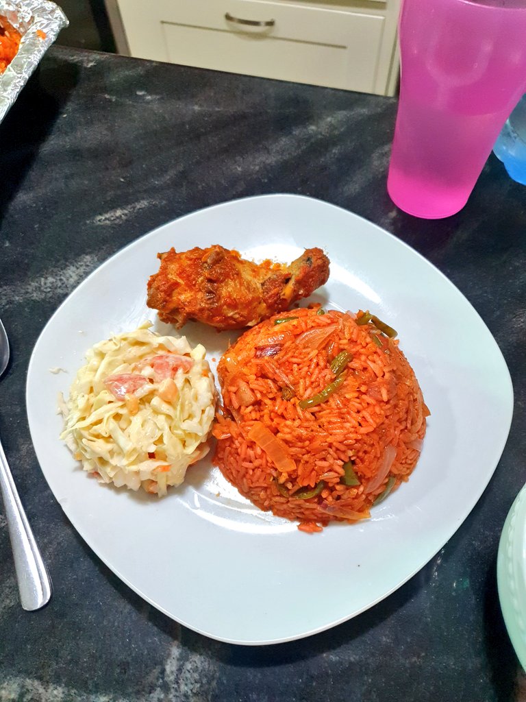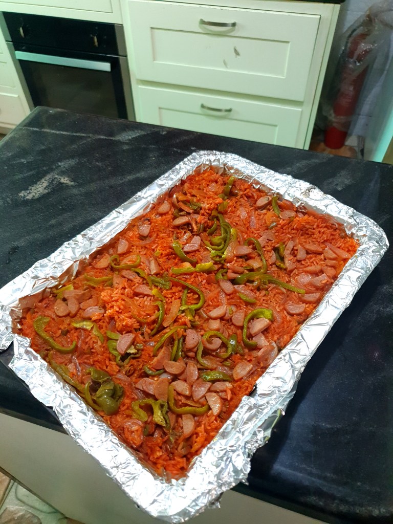 So I was craving party style Jollof rice yesterday and but I was not in the mood to cook it over a pot. So I was on Food Network and I saw someone bake pasta in the oven (Baked Pasta with Meatballs should be my next recipe). It looked easy and convenient. So I woke up this morning and go to work.